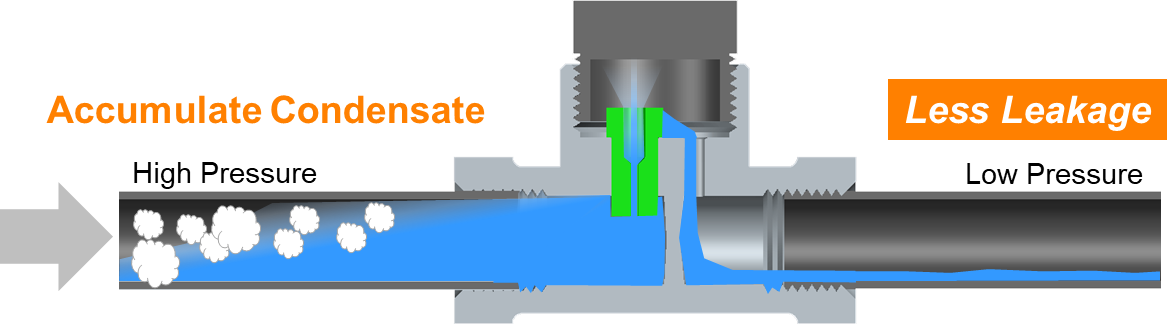 Non- ST Nozzle Type Steam Traps donʼt accumulate drain