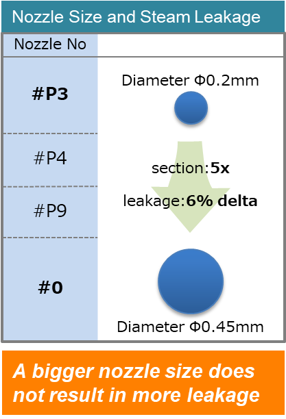 • Apply 2-3 count larger nozzle, as the resulting leakage is much less than that of using Mechanical