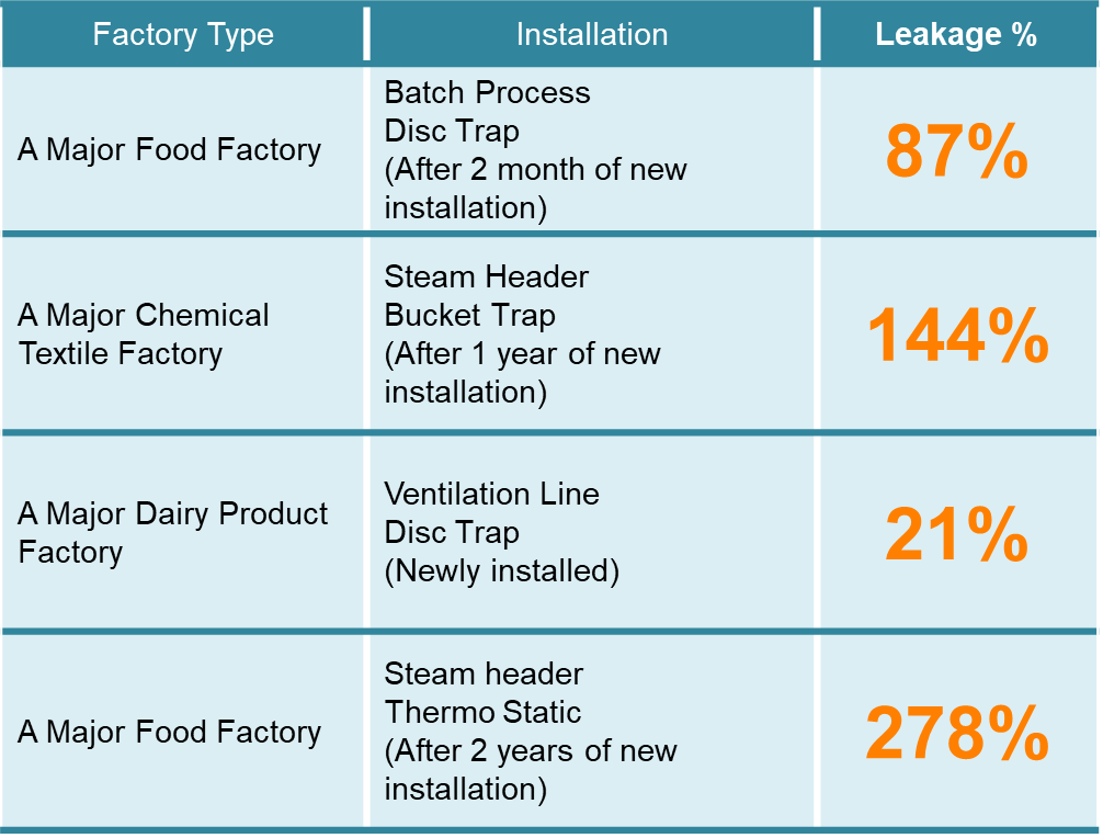 Steam Leakage by Types